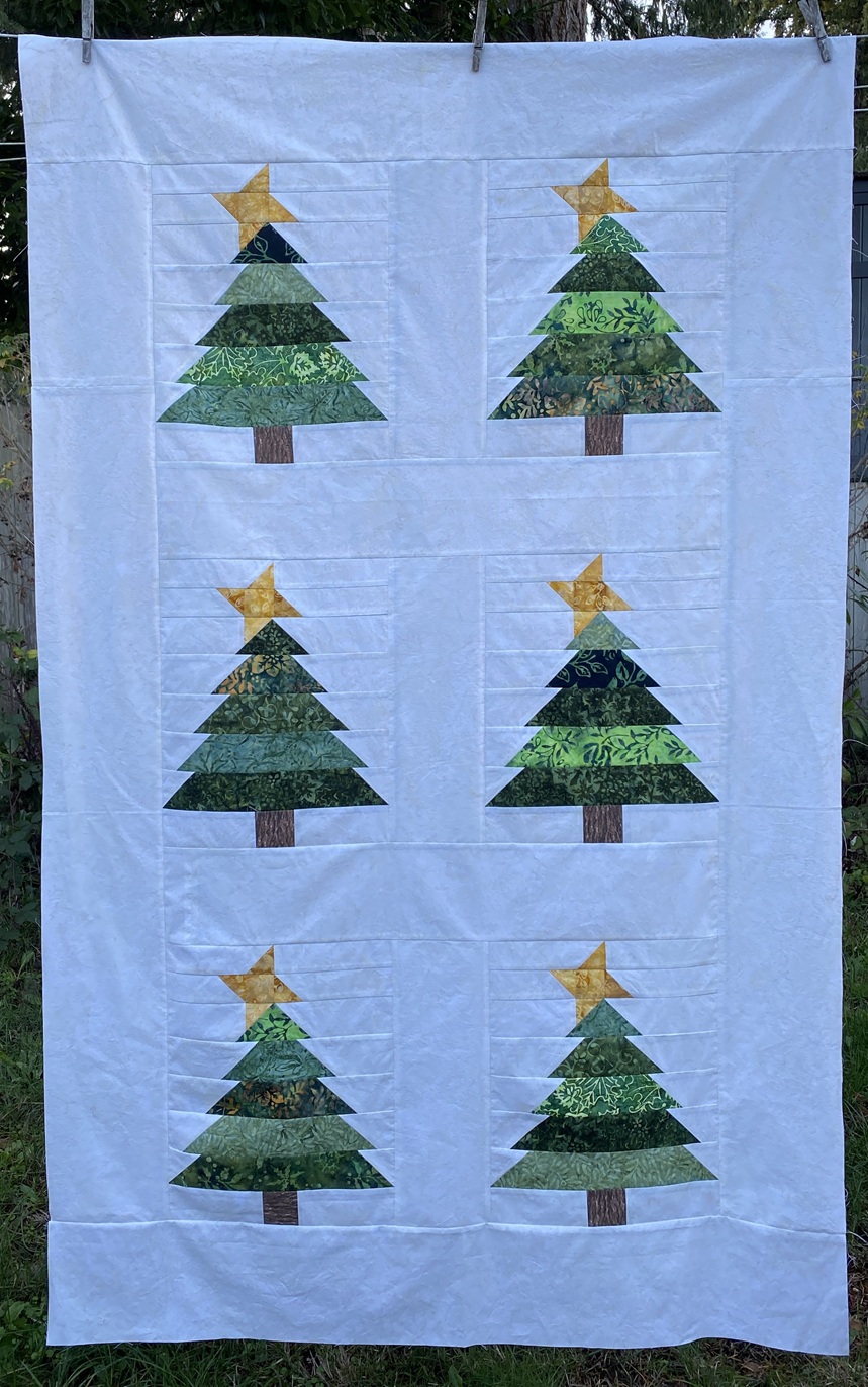 The Pine Tree Star quilt has 4 project sizes and below are photos and illustrations of the Pine Tree Star projects.